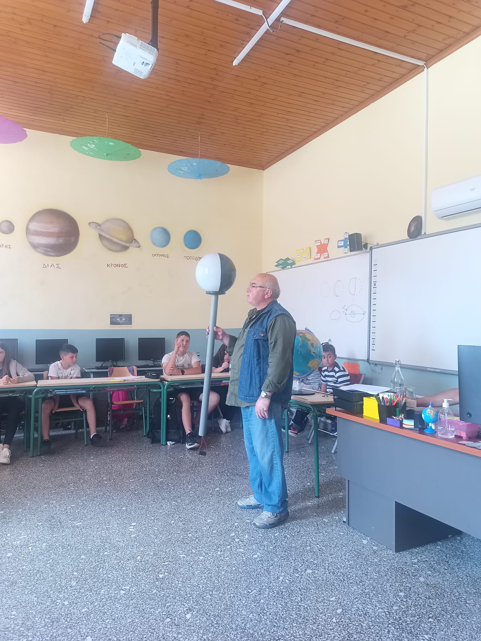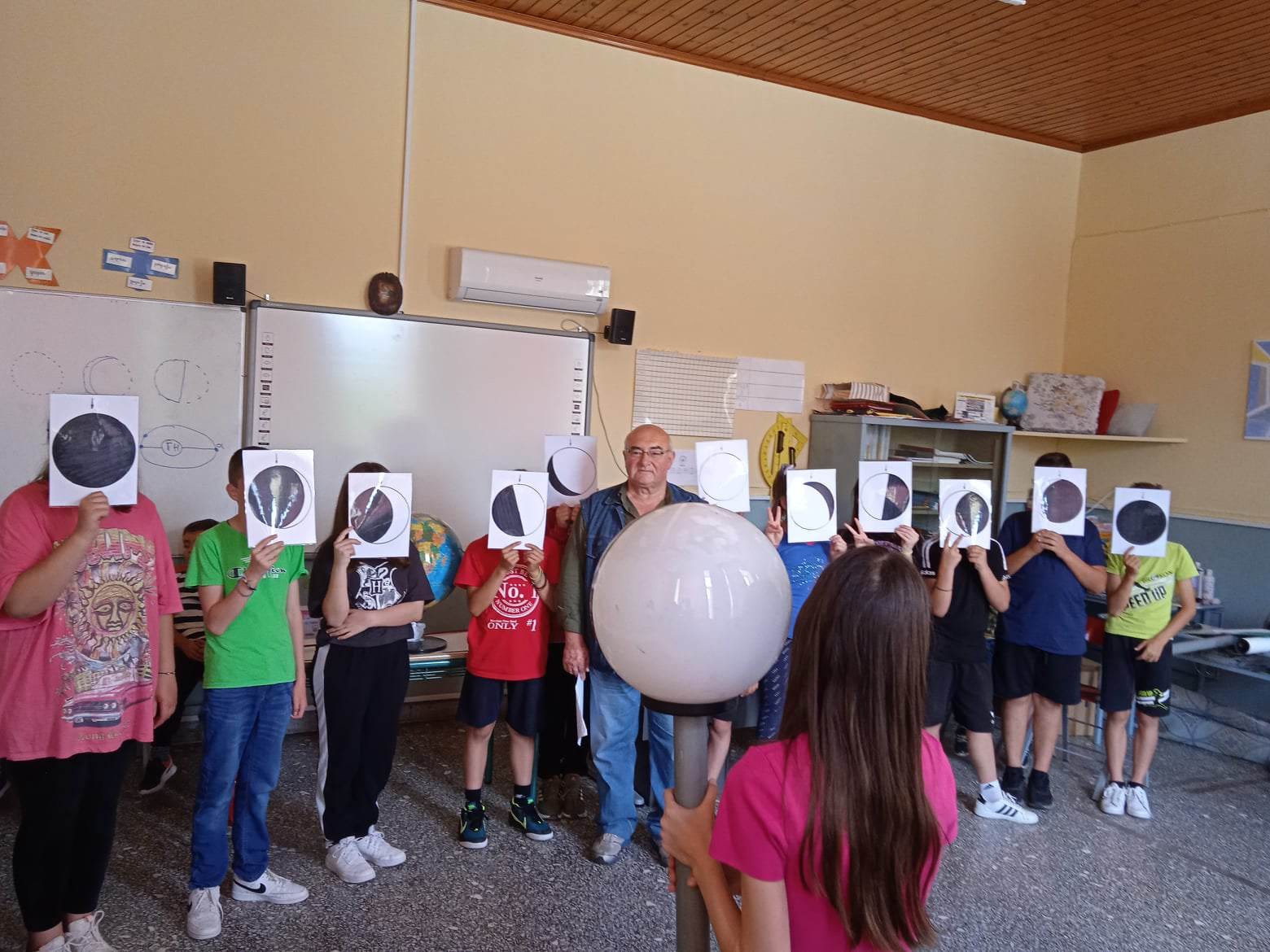 Βιωματικό παιχνίδι των μαθητών για την κίνηση της σελήνης και της γης και πώς αυτές επηρεάζουν τον τρόπο που φαίνεται η σελήνη από τη γη.