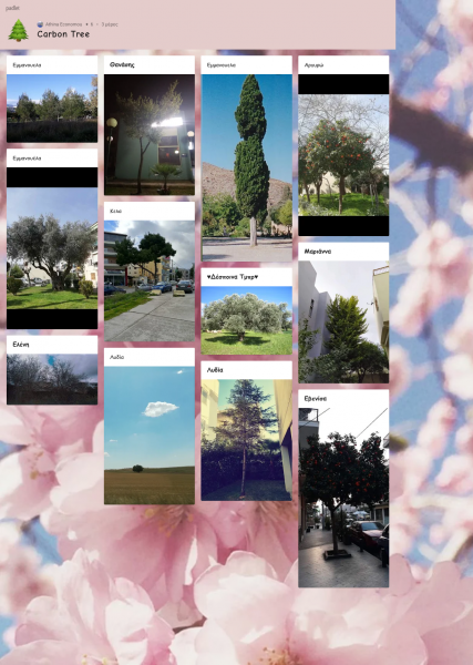 Αρχικά, παρακολουθήσαμε την εφαρμογή του "δέντρου του άνθρακα" (http://www.carbontree.fi/), για να μελετήσουμε τη διαδικασία της φωτοσύνθεσης και τους παράγοντες που την επηρεάζουν.