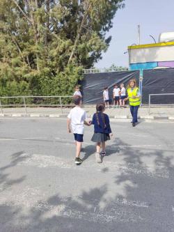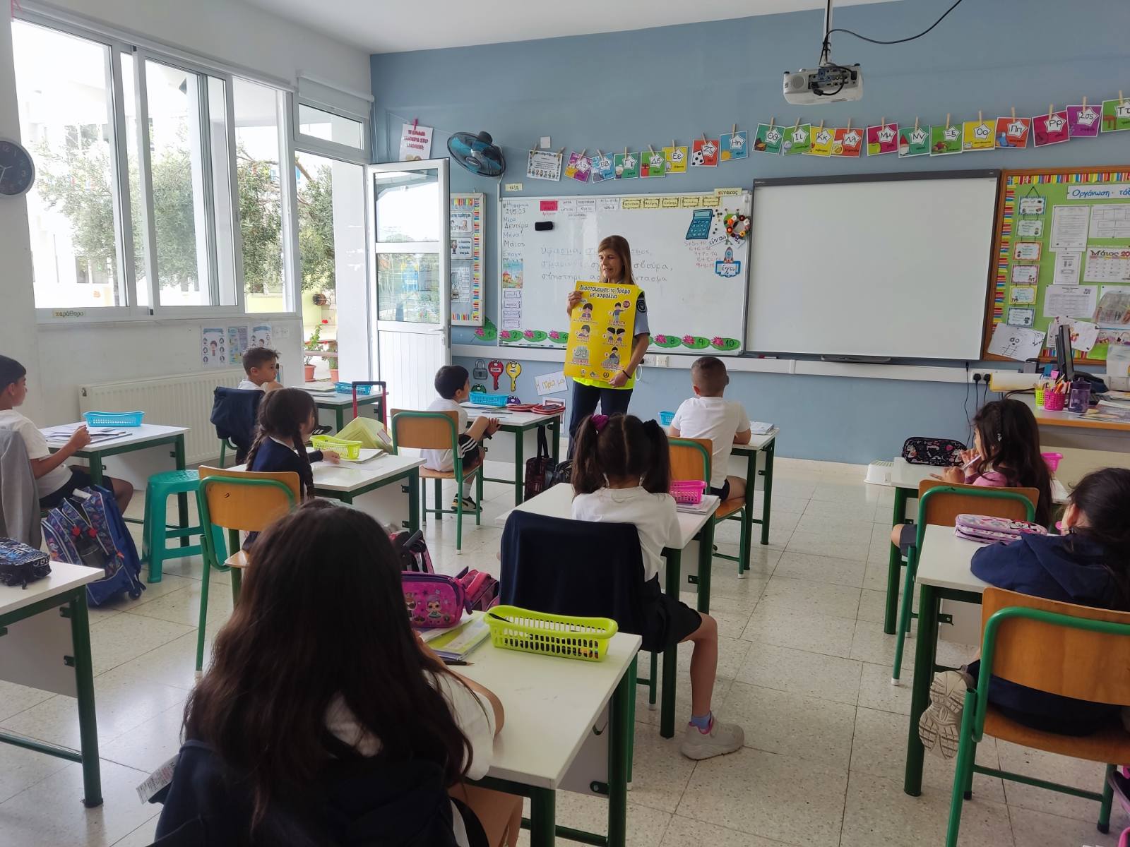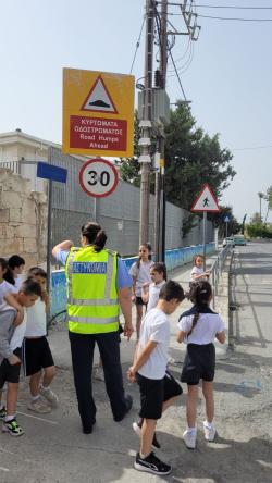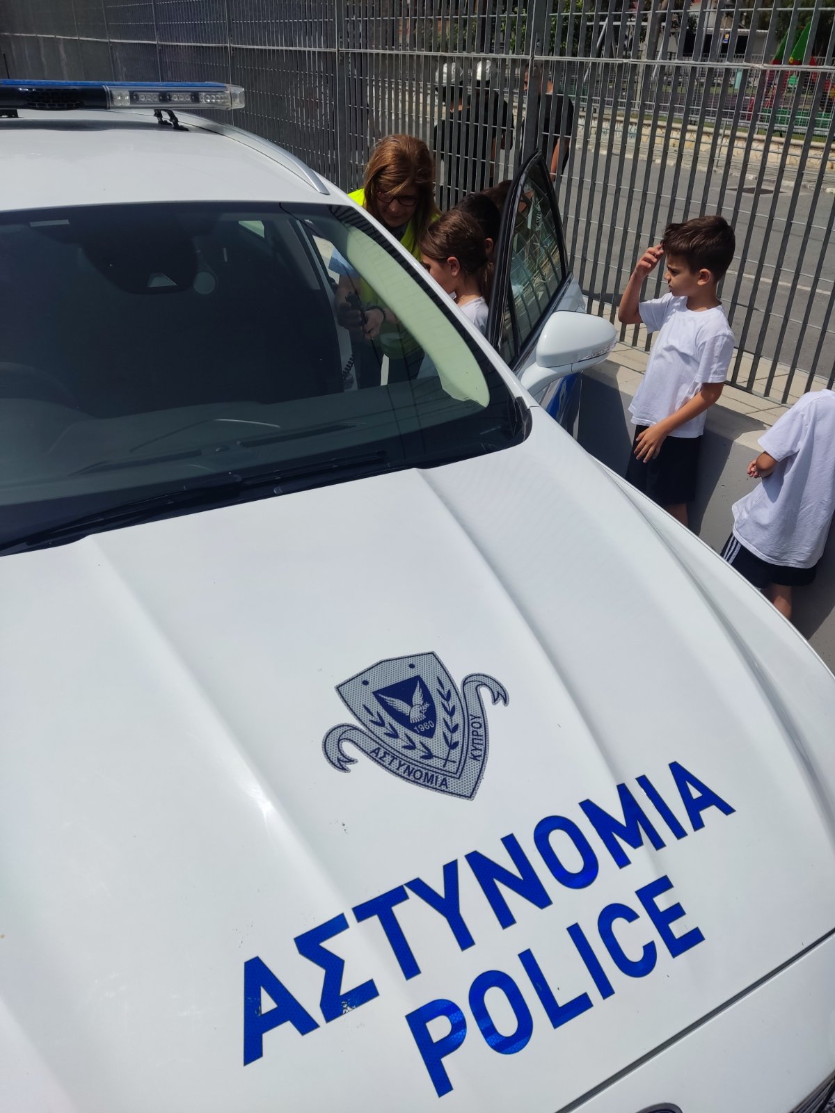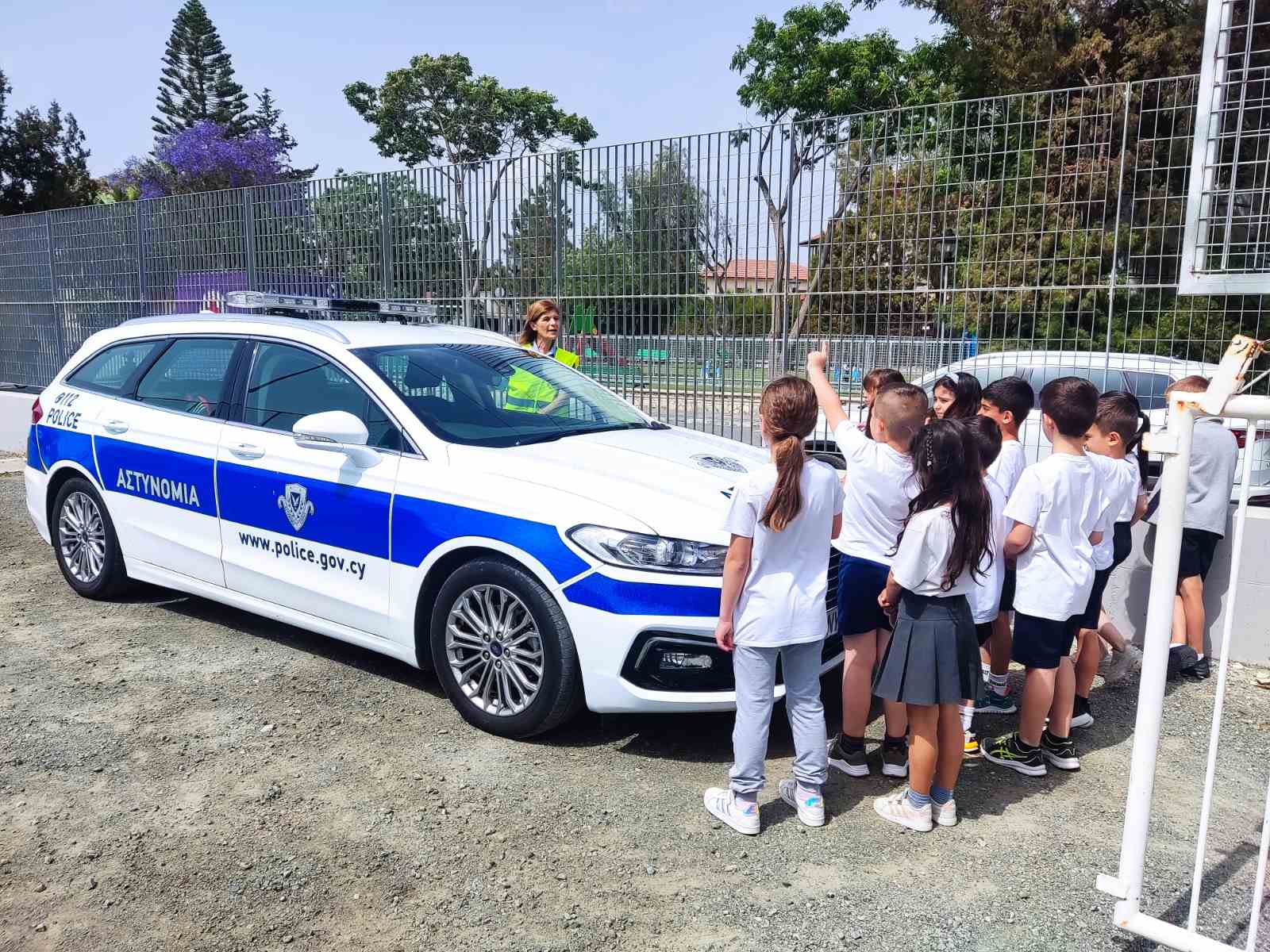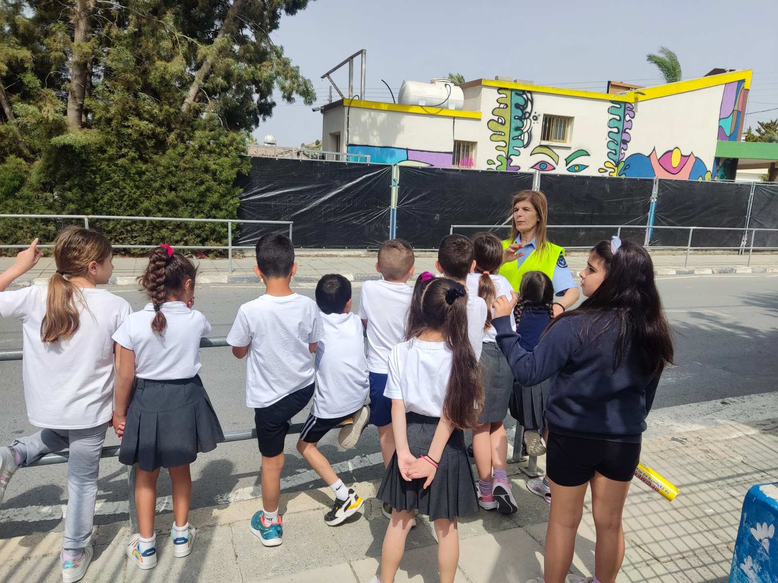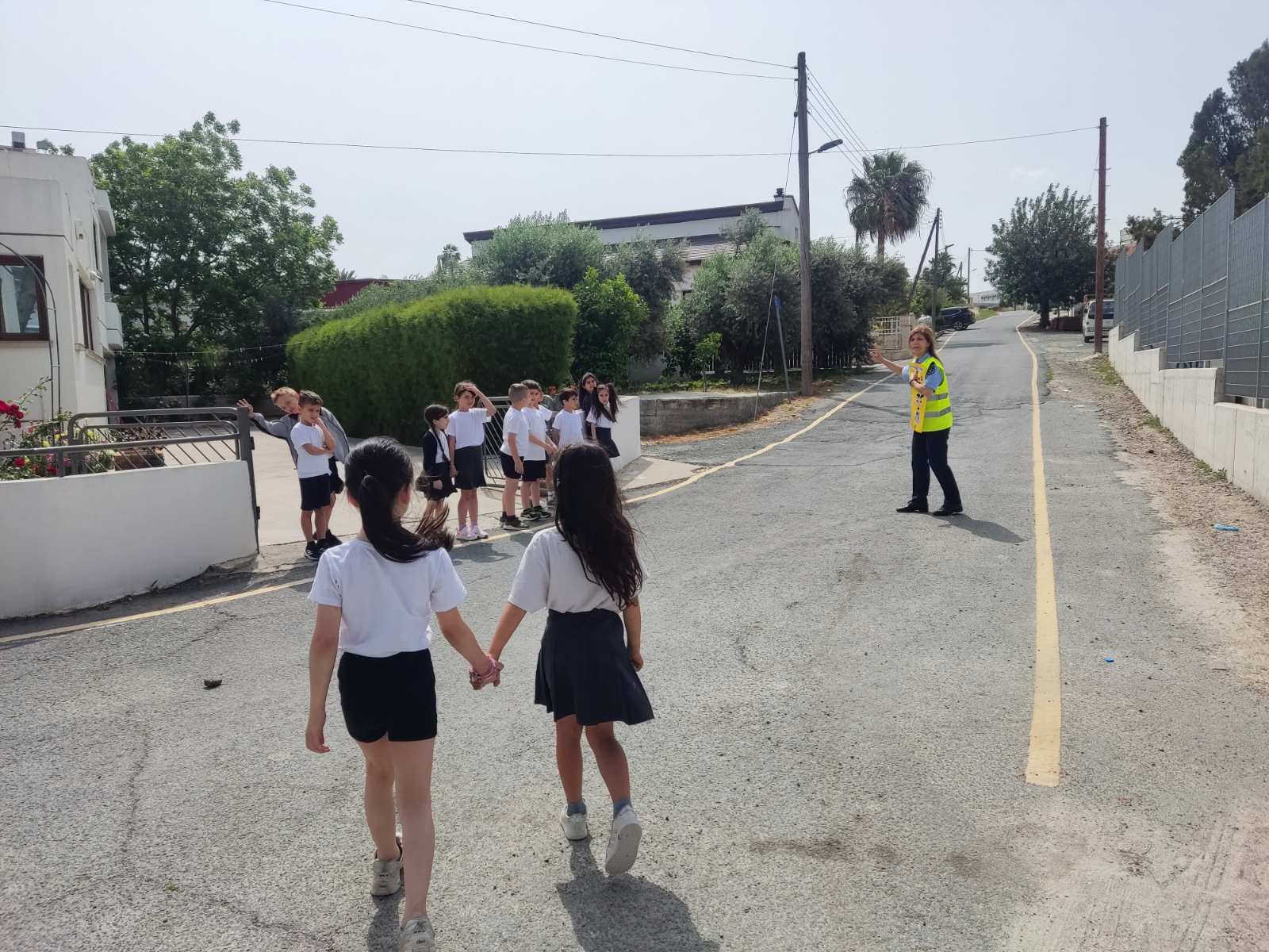 Οι αστυνομικοί επισκέπτονται την τάξη μας. Τα παιδιά με την αστυνομικό συζητούν θέματα που αφορούν στην ασφαλή διακίνησή τους ως πεζοί, ποδηλάτες και επιβάτες. Στη συνέχεια, επισκέπτονται τις εισόδους/ εξόδους του σχολείου. Οι αστυνομικοί και τα παιδιά ακολουθούν τα βήματα για ασφαλή διασταύρωση των δρόμων ενώ εντοπίζουν στους δρόμους προβληματικές καταστάσεις. Οι αστυνομικοί εισηγούνται στα παιδιά να επικοινωνήσουν με το Κοινοτικό Συμβούλιο ώστε να τους μεταφέρουν τα προβλήματα που εντόπισαν (π.χ. η διάβαση χρειαζόταν βάψιμο, το φανάρι στη διάβαση πεζών δεν λειτουργούσε).