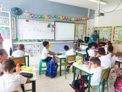 7. Με ερωτήσεις της εκπαιδευτικού, οι μαθητές αναφέρουν τον στόχο του μαθήματος (μαθαίνω να διασταυρώνω με ασφάλεια). Τους ανακοινώνεται ότι στο επόμενο μάθημα θα κάνουν πρακτική εξάσκηση των όσων έμαθαν στο σημερινό μάθημα με τη βοήθεια εκπροσώπου από το Τμήμα Τροχαίας της αστυνομίας.