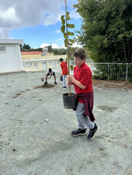 Οι μαθητές μας συνεργάστηκαν μέχρι στιγμής με τον κοινοτάρχη του χωριού, τον τοπιοτεχνίτη που σχεδίασε σε τοπικό σχέδιο τον χώρο που θα δημιουργήσουμε και με γεωπόνο για την επιλογή των δέντρων και φυτών που θα φυτευτούν στο χώρο και θα παρέχουν τη σκιά που επιδιώκουμε.