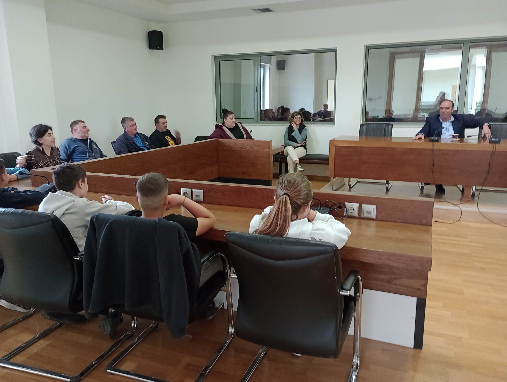 Την Πέμπτη, 1/6, μας υποδέχτηκε στο Δημαρχείο, όπου κάναμε μια παρουσίαση των δράσεων του έργου μας και οι μαθητές του παράδωσαν επιστολή με αιτήματα για τη συντήρηση των υποδομών ασφάλειας. Οι εκπρόσωποι των τοπικών φορέων αναφέρθηκαν στα προβλήματα που αντιμετωπίζουν τα φαράγγια, στην επιθυμία της κοινότητας να εξακολουθούν να αποτελούν πόλο έλξης περιπατητών και τουριστών και στις ενέργειες που χρειάζονται να γίνουν με συνεργασία Δήμου και πολιτών.