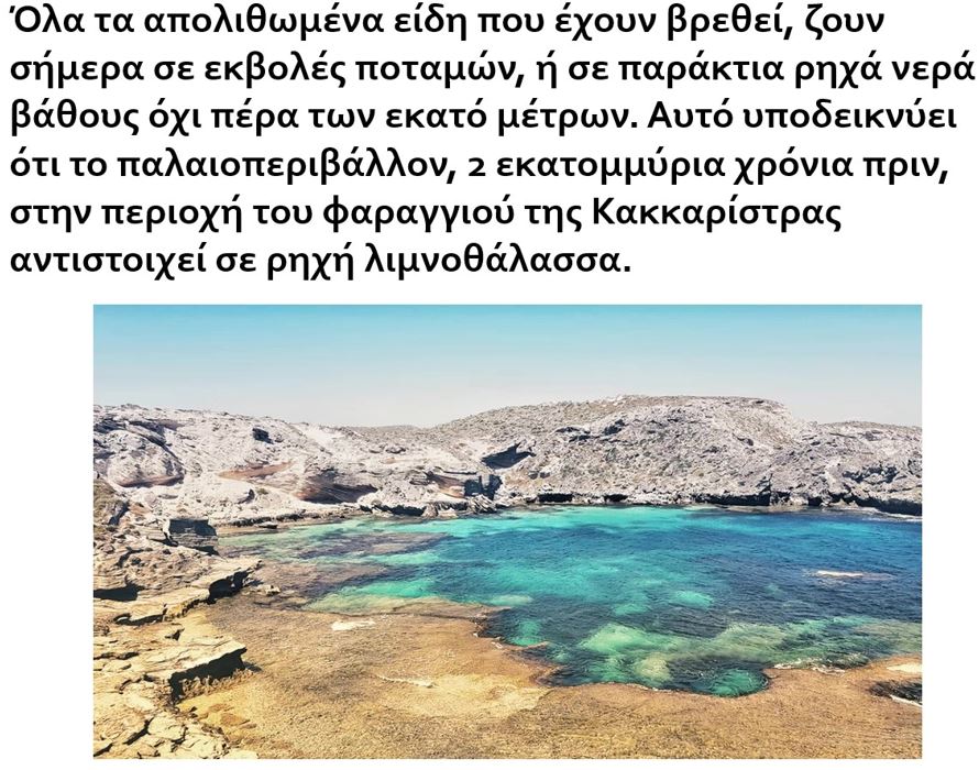 Ο καθηγητής των μαθητών/τριων είναι ερευνητής παλαιοντολογίας. Έχοντας το υπόβαθρο αυτό, οι μαθητές και ο καθηγητής επέλεξαν να μελετήσουν ένα φαράγγι στην Κύπρο εξέχουσας σημασίας, το φαράγγι της Κακκαρίστρας. Το φαράγγι αυτό, αν και άγνωστο και ανεξερεύνητο για πολλούς ακόμη, τεκμηριώνει τα τελευταία στάδια της Ανάδυσης της Κύπρου από τη θάλασσα 2 εκατομμύρια χρόνια πριν από σήμερα.