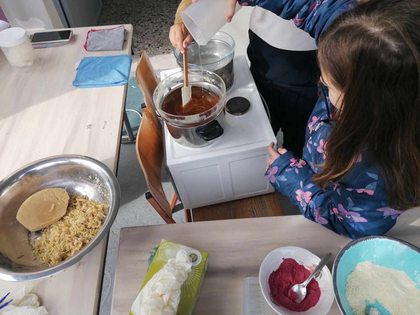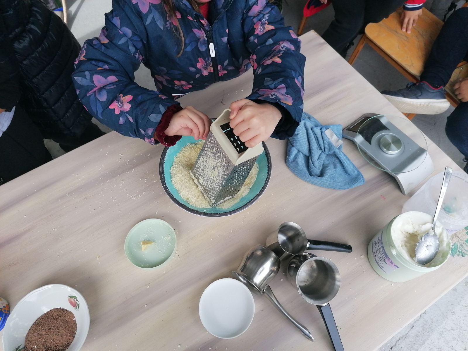 Με την πολύτιμη καθοδήγηση της κας Αφεντούλας Καλτσίδη, retreat ευεξίας, και την υποστήριξη των εκπαιδευτικών, των μελών του Δ.Σ. του Συλλόγου Γονέων και Κηδεμόνων και της ευπρεπίστριας του Σχολείου, τα παιδιά λειτούργησαν εργαστήρια παρασκευής και συσκευασίας φυσικών προϊόντων ίασης και περιποίησης του δέρματος, όπως κεραλοιφές, scrub (προϊόν απολέπισης) και βουτυροκακάο για τα χείλη. Για αρκετές μέρες το Σχολείο μύριζε περγαμόντο, μέλι, κερί, χαμομήλι, λεβάντα, σοκολάτα. Όλες οι πρώτες ύλες, οι συσκευασίες και οι ταμπέλες ήταν χορηγίες επιχειρηματιών της Κοινότητας.
