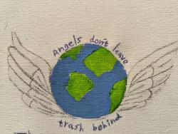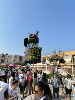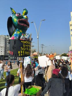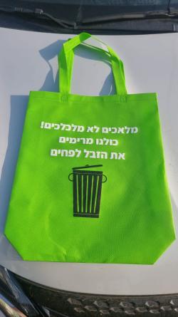 The revolutionaries with the accompanying teachers and the sign with the slogan "Angels do not pollute, pick up the trash in the bins" (in Hebrew it rhymes beautifully...)