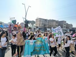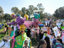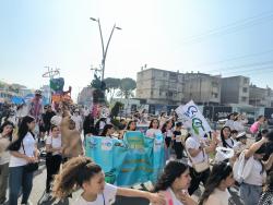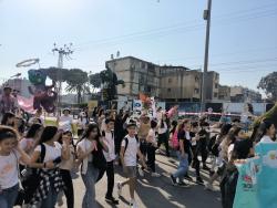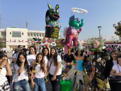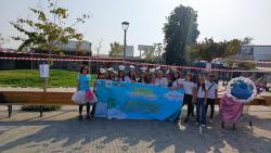 Our girls at the beginning of the parade together with actors we recruited that walked among the people and also raised awareness of the problem of garbage in the public space.