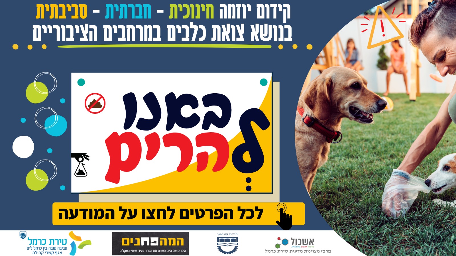The goal of the project is to raise awareness and develop responsibility among dog owners to pick their dog’s feces in the public space, as well as creating a community ecosystem while cooperating with other community representatives, the municipality of Tirat Carmel and the students.