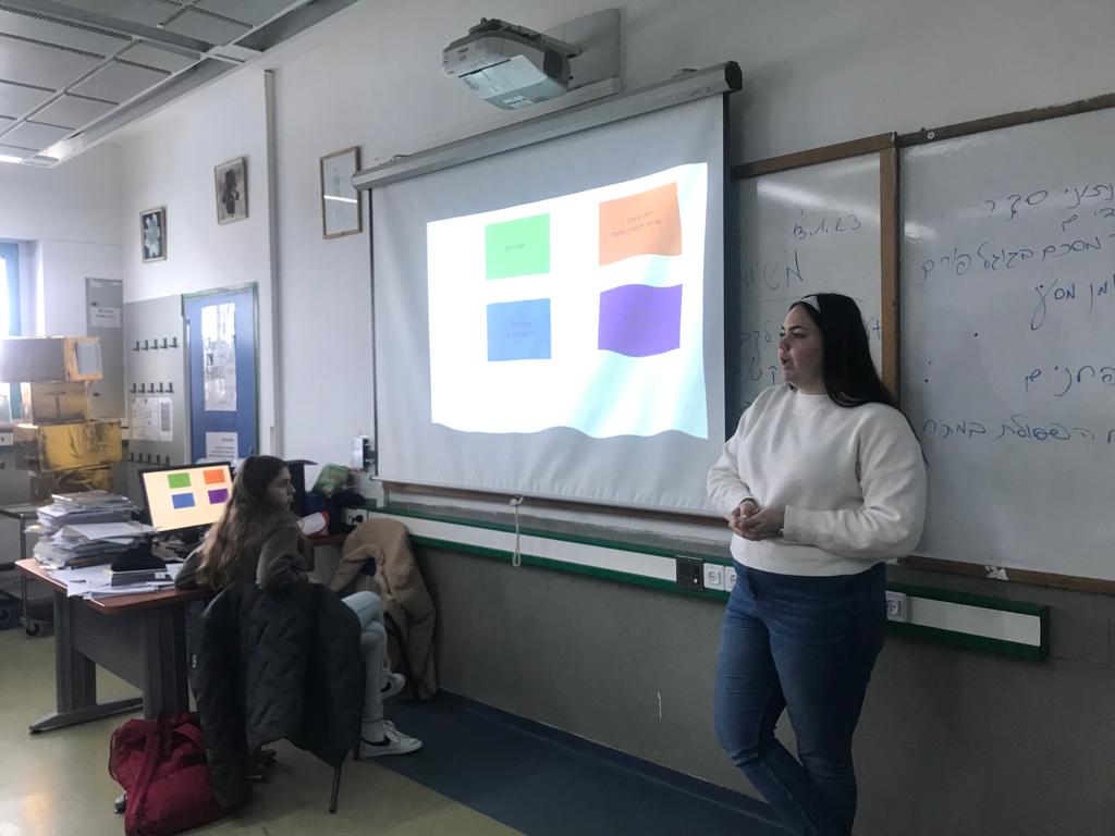 2. The student council, together with members of the elected committee, They conducted an activity on the topic "Take the garbage with you" for all the classes (around 350 students in junior high) in Tu Beshvat (5-6th of February).