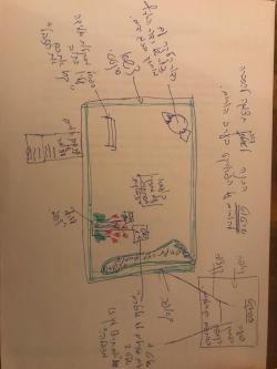 בשרטוט הראשוני מוצג תרשים בכתב יד , הדוכן שישמש בערב הורים ,ובאתרים השונים בעיר עמותה לקשיש, בכניסה לרשת מזון. כשיהיו תמונות מהשטח נעלה.