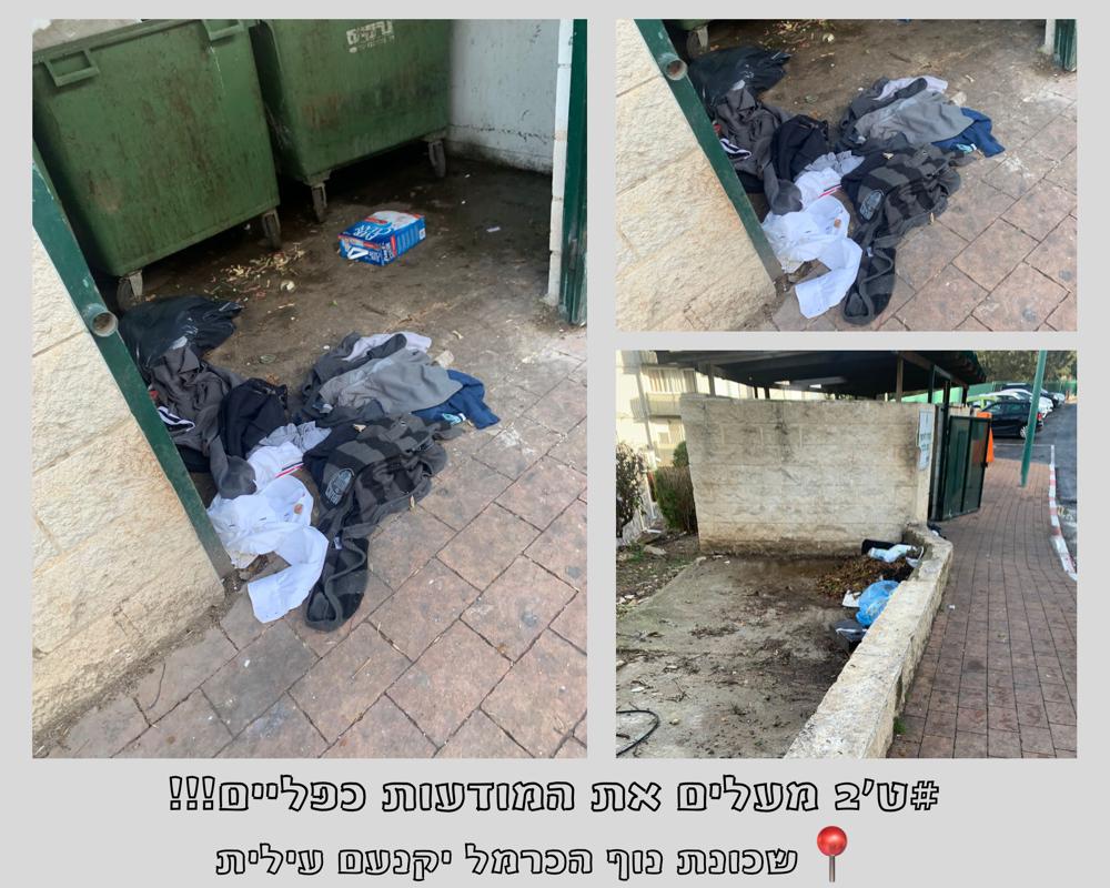 We chose an old neighborhood "Nof LeCarmel" which is close to the school,that included the streets: Rimon,Shaked, Teena. The residents of the neighborhood should be encouraged to throw their garbage in the trash in the public space.